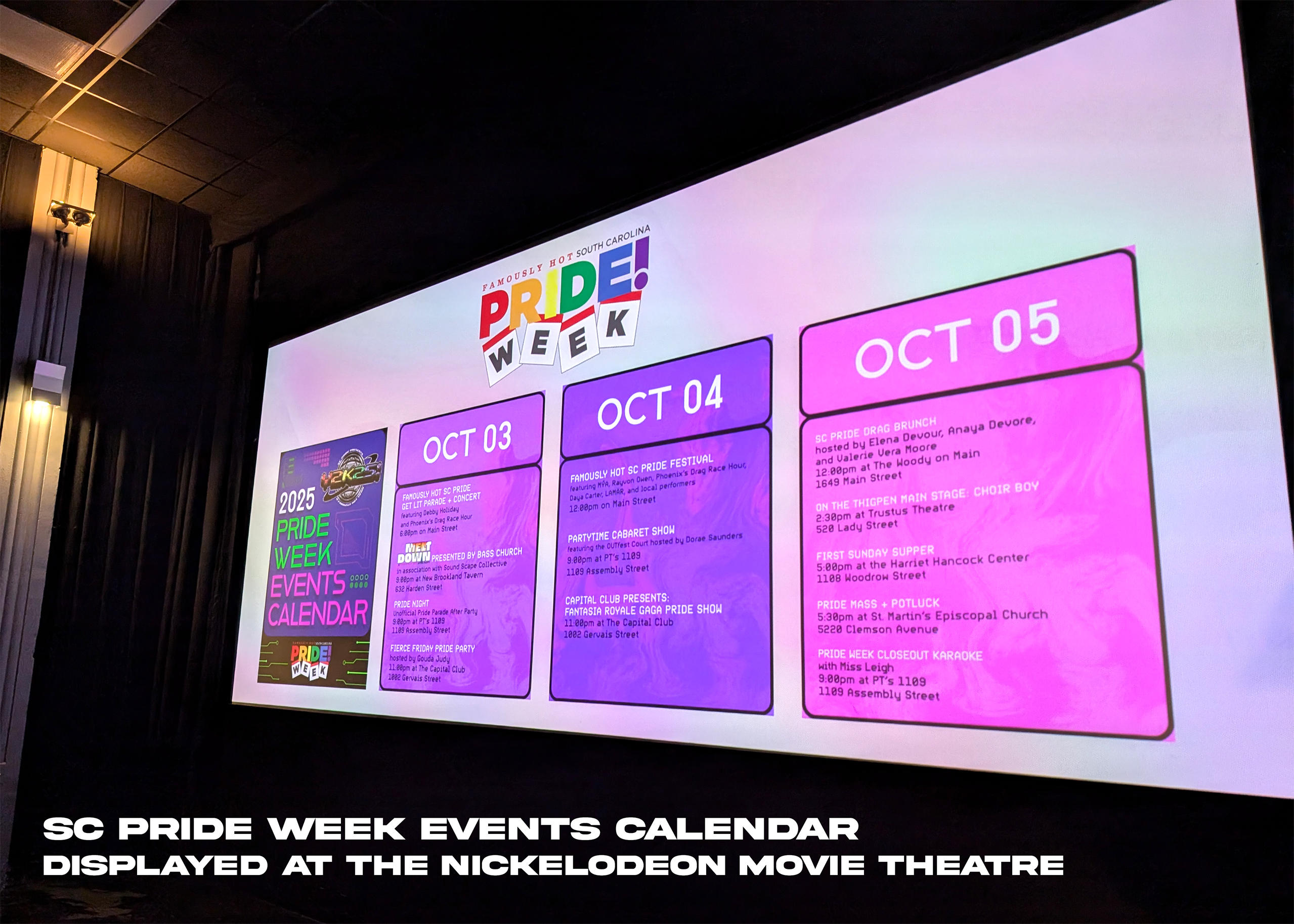 SC Pride’s annual “Pride Week” is a multi-day celebration that brings together South Carolina’s LGBTQ+ community and its allies for a series of events, culminating in a vibrant night parade and weekend-long festival, to promote visibility, unity, and advocacy.